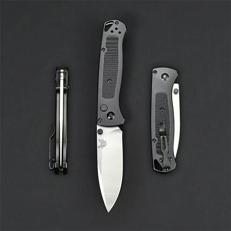 蝴蝶535侧开跳刀 全长:19cm 刃长:7.8cm 柄长:10.8cm 刃宽:2.6cm(最宽处) 刃厚:3mm 柄厚:1.25cm 柄宽:2.8cm 刃材:8Cr13Mov 柄材:航空铝(黑) 刀重:88G 毛量:153G(含包装) 硬度:58±1HRC