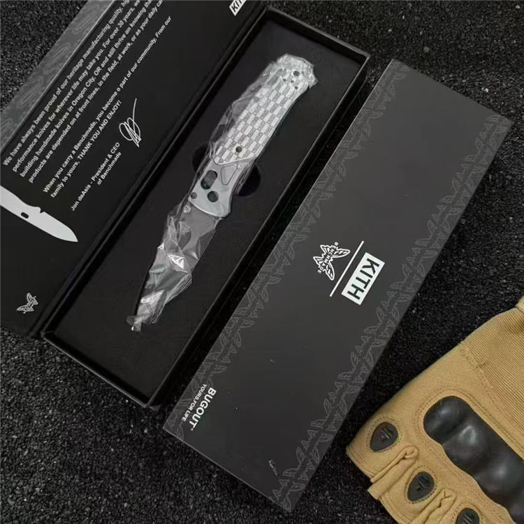 蝴蝶535-KITH合作款折刀 全长:18.9cm 刃长:7.6cm(开刃处) 柄长:10.8cm 柄厚:1.25cm 刃厚:0.27cm 刃宽:2.5cm 刀重:90g 毛重:225g 钢材:M390 柄材:铝合金 硬度:59-60 HRC 表面:新工艺涂层 包装:原厂礼盒