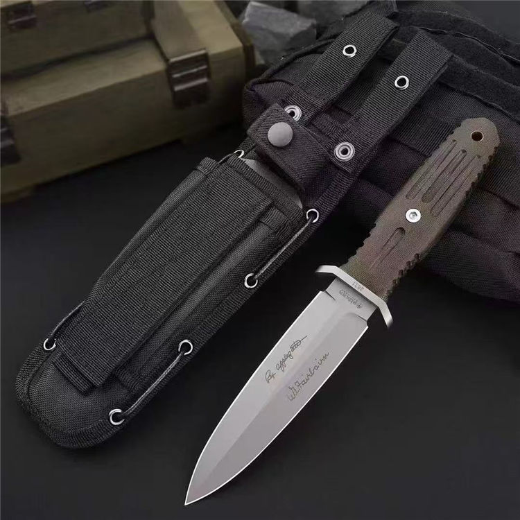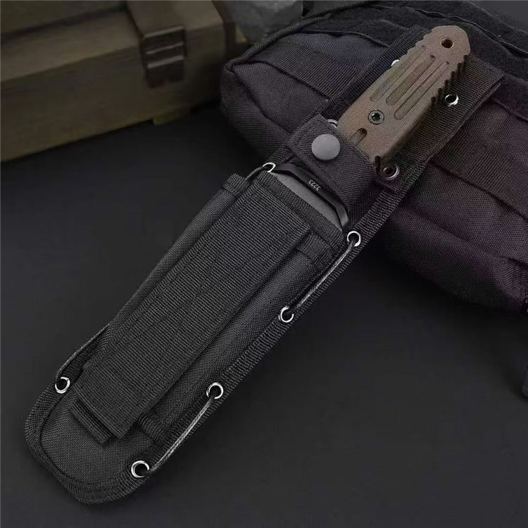 博克阿普盖特军版直刀 总长:27cm 刃长:14.5cm 柄长:12.4cm 刃宽:3.5cm 刃厚:5mm 刃材:440C 柄材:米卡塔 硬度:59-61HRC 重量:357g(含套) 工艺:CNC电脑锣精密加工制作