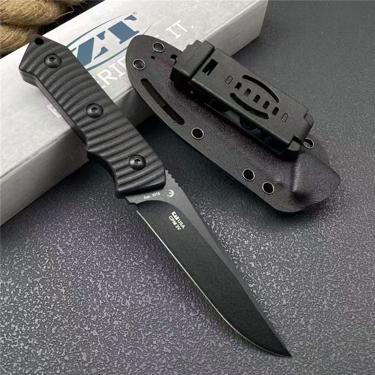 零误差ZT1018直刀 全长:22cm 刃宽:2.7cm 刃长:10.8cm 柄长:11cm 刃厚:4mm 刃材:CPM3V 柄材:一体钢+G10 刀重:180G/247G(含K梢) 毛量:288G 硬度:59-60HRC