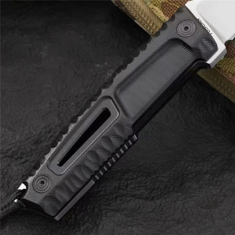 极端武力托斯卡纳直刀 全长:27.1cm 刃长:13.9cm 柄长:13.5cm 刃厚:6.0mm 刃宽:33mm 刃材:N690 柄材:G10 硬度:59HRC 净重:350克 刀鞘:K鞘 毛重:480克(含刀套) 包装:礼盒
