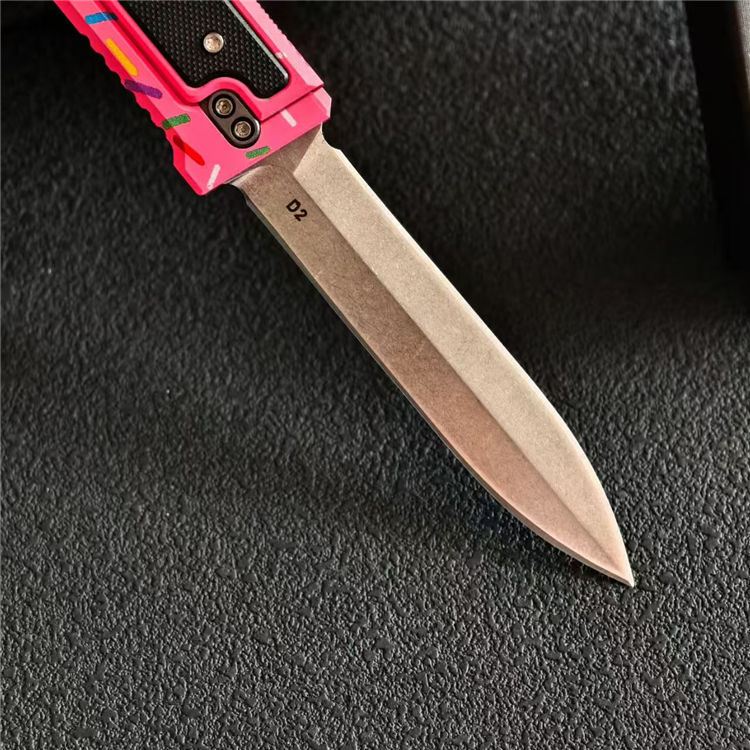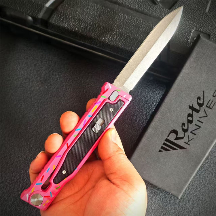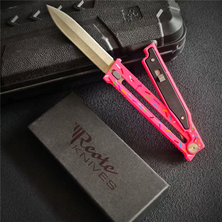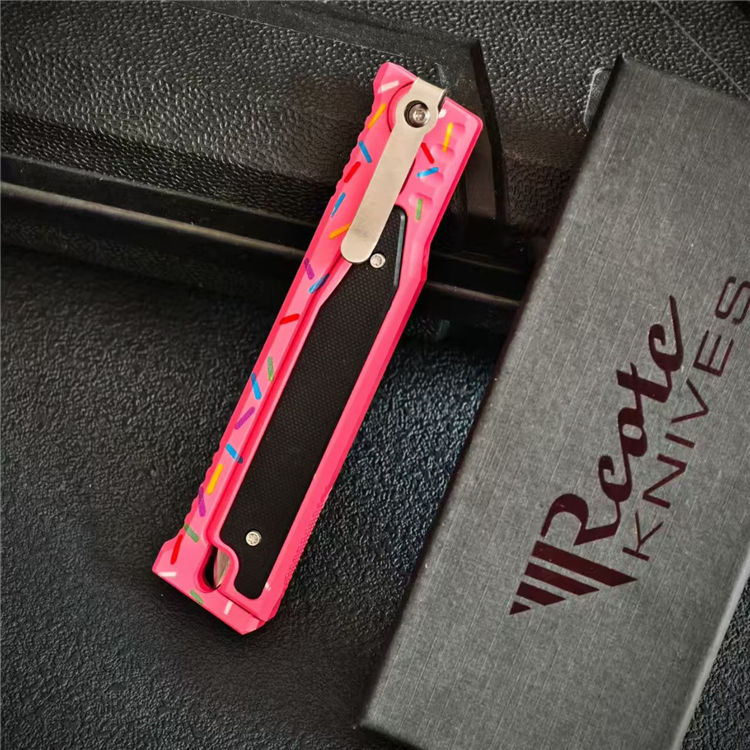 瑞吉甜甜圈萝卜刀 全长:23.2cm 刃长:9.8cm 柄长:13cm 刃厚:3mm 刃材:D2 柄材:CNC铝柄 硬度:59-60HC 重量:100g/151g(含包装)