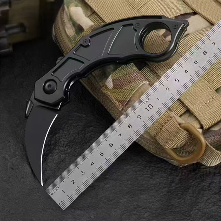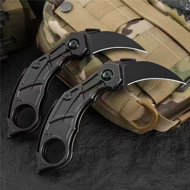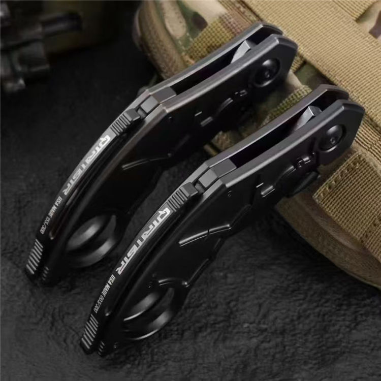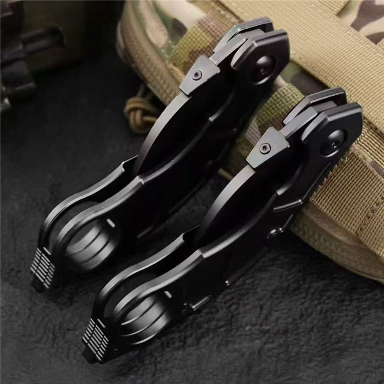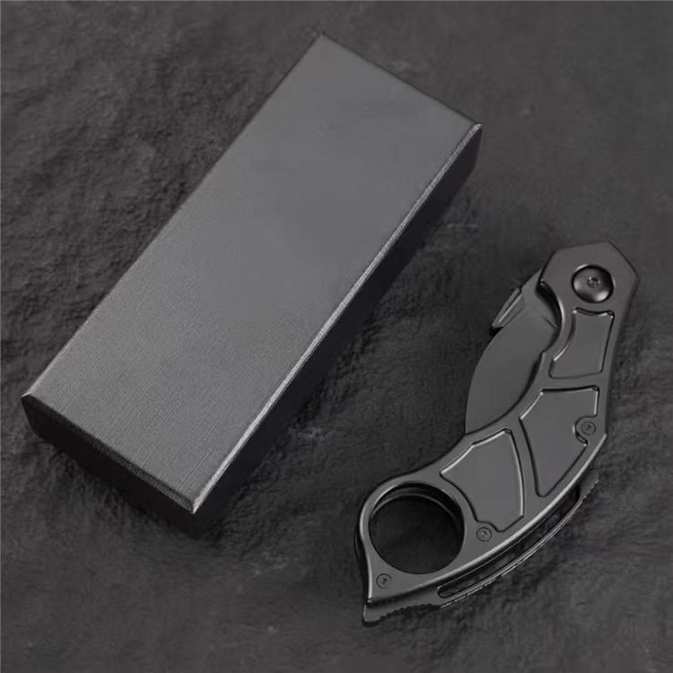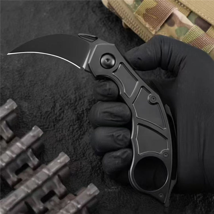 军需官QSE14折叠爪刀 全长:16.8cm 刃长:5.8cm 刃厚:0.48cm 刃材:14C28N山特维克(实标) 表面:黑钛 柄材:TC4钛合金 硬度:60HRC 包装:黑色礼盒