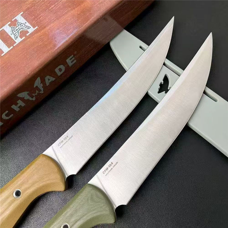 蝴蝶4050直刀 全长:282mm 刃长:154mm 刃宽:29mm 柄长:125mm 刃厚:2.5mm 刃面:锻光 刃材:CPM-154钢 净重:142g 重量:272g(含刀鞘包装盒) 刀鞘:灰色 PIM 硬度:60HRC真空淬油热处理 柄材:绿色或沙漠色G10 包装:原装彩盒 备注:设计用于家庭厨房和徒步旅行,户外露营