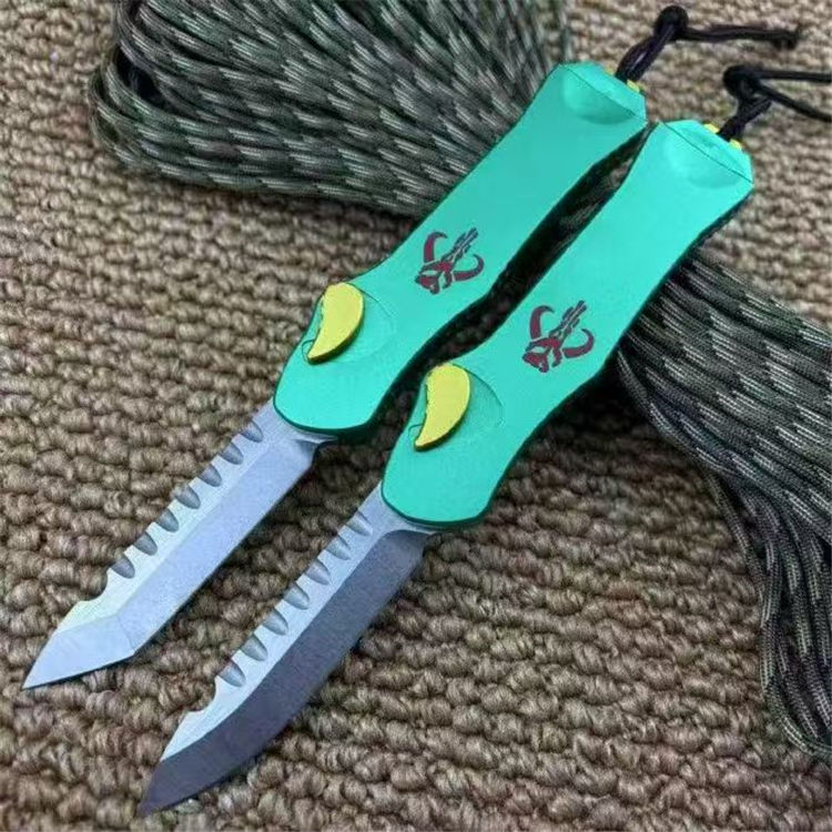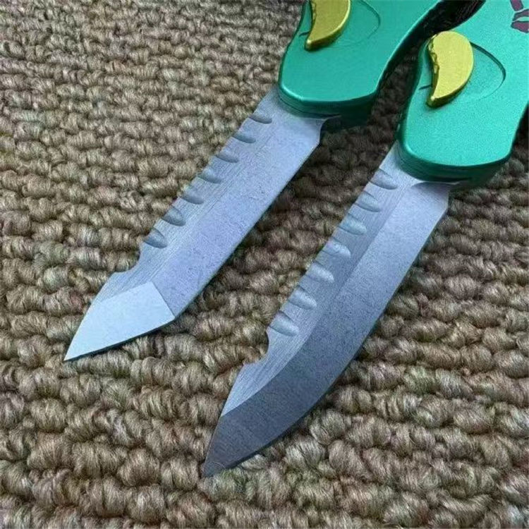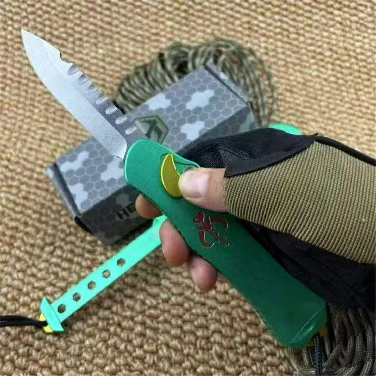 异教徒九头蛇V3直出跳刀 全长:22.9cm 刃材:m390 长度:8.8cm 刃宽:1.98cm 刃厚:0.40cm 柄材:太空铝 刀型:直跳锁定带保险按钮锁 净重:145克 附件:尼龙套