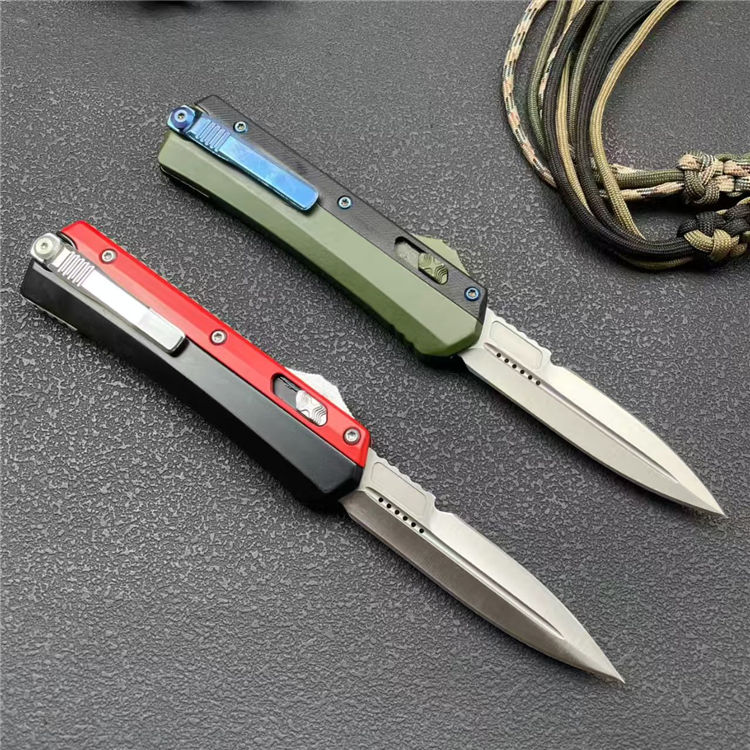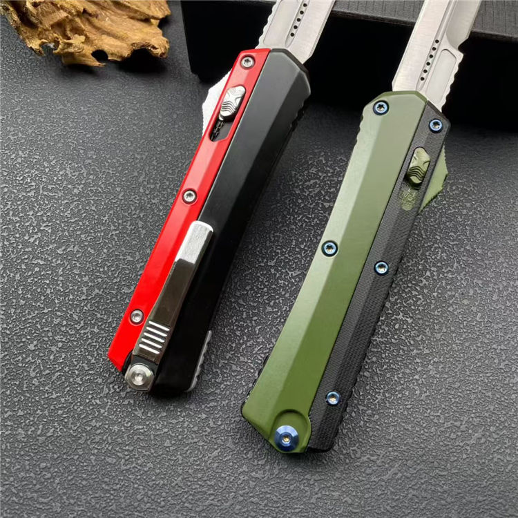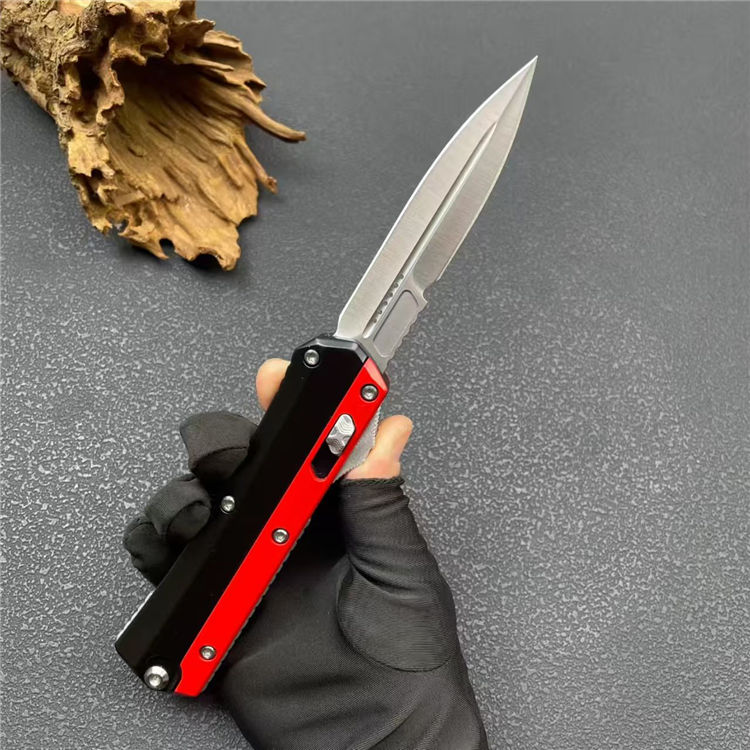 外贸版蛇神直出跳刀 全长:23cm 刃长:8.8cm 刃厚:3mm 刃材:8CR14MOV 硬度:58HRC 柄材:锌合金+尾部破窗锥 锁闭:弹簧直出 净量:234G 毛重:317G