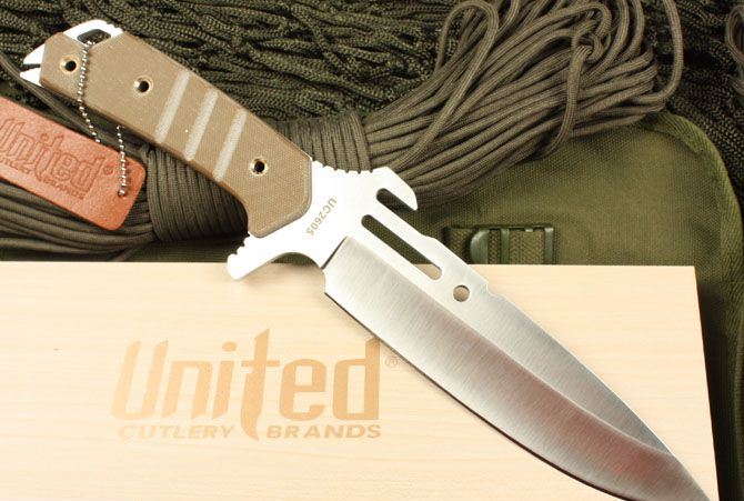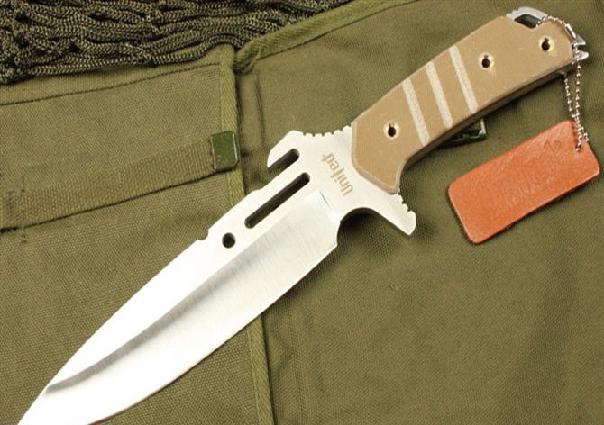 UC-2605格斗刀 全 长: 320mm 刀 长: 170mm 刃 材: 420 硬 度: 57-58HRC 表 面: 砂光 刃 厚: 6.3mm 柄 长: 140mm 柄 材: G10 重 量: 354g 原产地: 美国品牌,中国代工 这款战术直刀,.很强悍.专为格斗设计的合金护手.大力劈砍也不会脱手.使你能放心使用.
