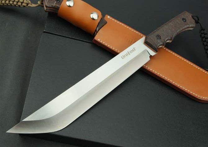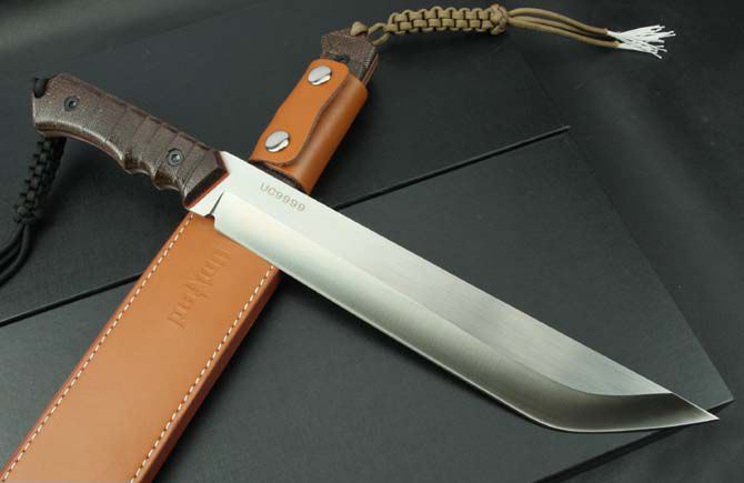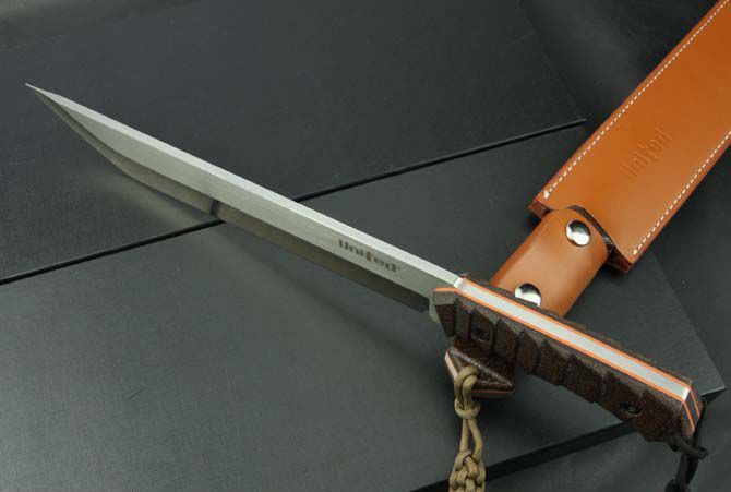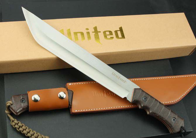 联合刀具—追命直刀 全 长:420mm 刃 长:285mm 柄 长:130mm 刃 宽:47mm 刃 厚:5.5mm 刃 材:5Cr13Mov 重 量:740g(含包装) 硬 度:57HRC 表 面:砂光 柄 材:碳纤 锁 型:定锁 其 他:配皮套和纸盒