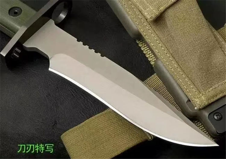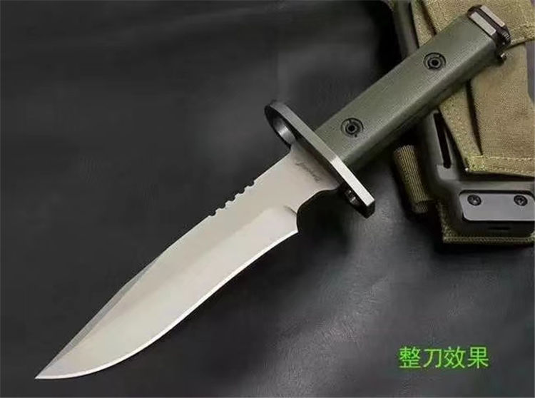 全 长: 32cm 刃 长: 16cm 刃 宽: 3.7cm(最宽处) 柄 长: 13cm 刃 材: D2钢 硬 度: 58-59HRC 表 面: 钛离子 刃 厚: 0.60cm 柄 材: 龙骨结构,绿色G10柄片 净 重: 560g 总 重: 1040g(包括纸盒和刀鞘) 包 装:原装纸盒 其 他:配附ABS刀鞘 品 质: 品质卓越