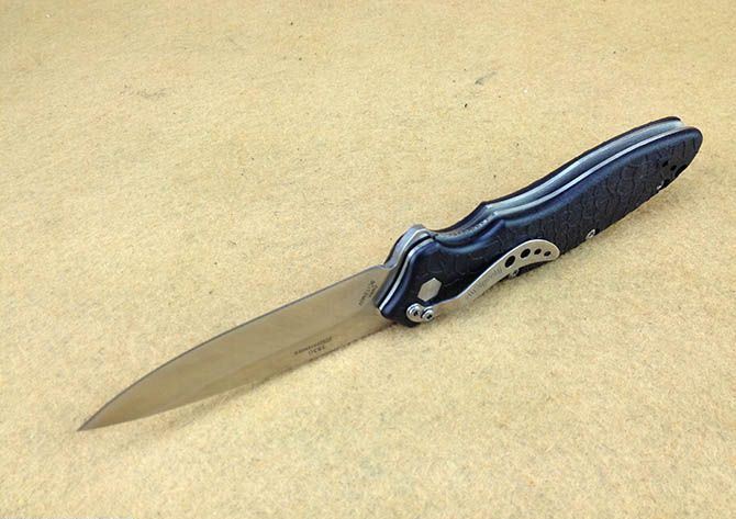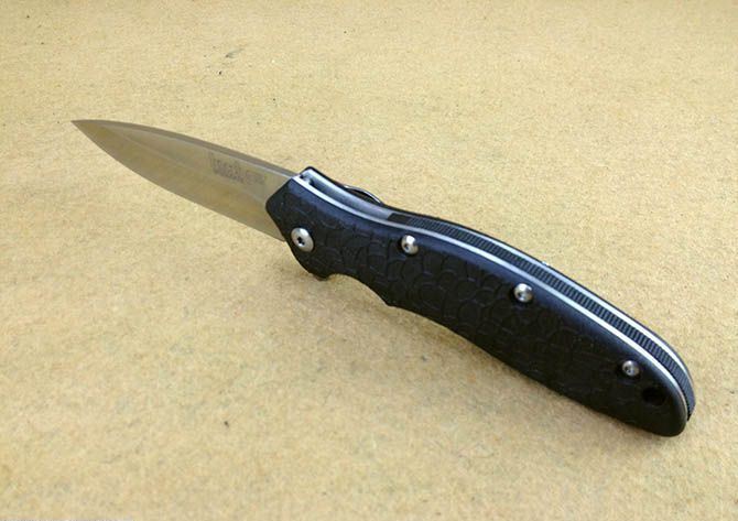 克肖-小鱼儿折刀 全长:18cm 刃长:7.6cm 柄长:10.5cm 刃厚:2.8mm 刃宽: 2.2cm 刃材: 8Cr13MoV 柄材: 尼龙波纤 硬度: 58HRC 重量: 80克+包装20克 表面处理:砂光 锁型:助力