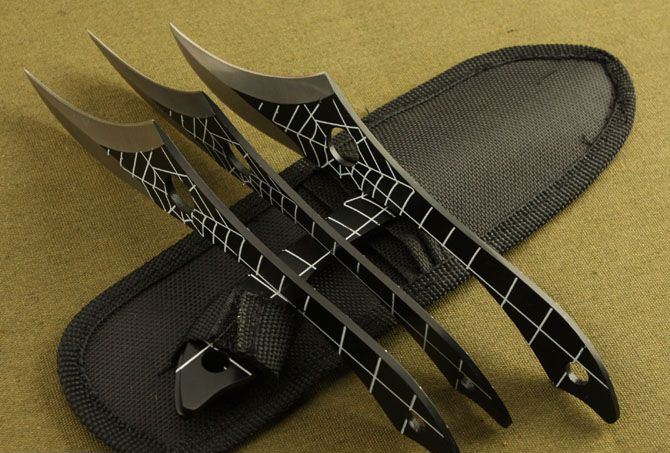 蜘蛛网飞镖 全长:17.8cm 刃厚:2.2mm 刃宽:3cm 总重:120g 柄材:尼龙绳 其他:三支装