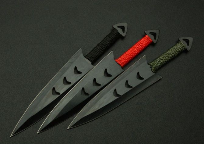 长度:16.5cm 最宽:2.8cm 刃厚:2.6mm 刀套:尼龙套 总重:140g 表面:黑色 其它:三支装
