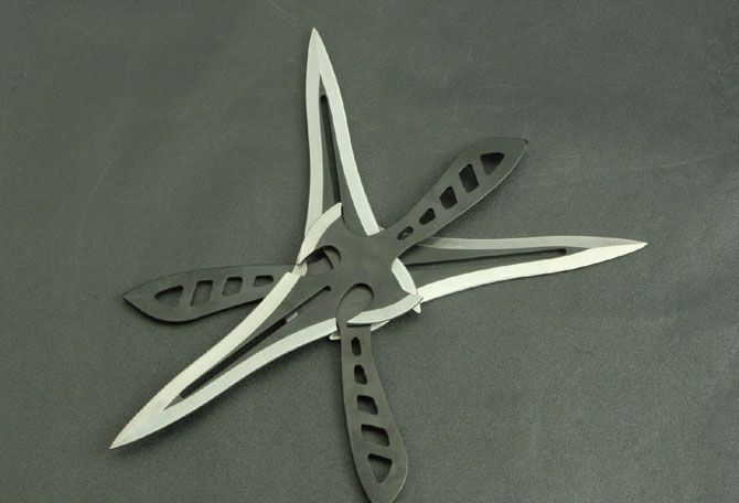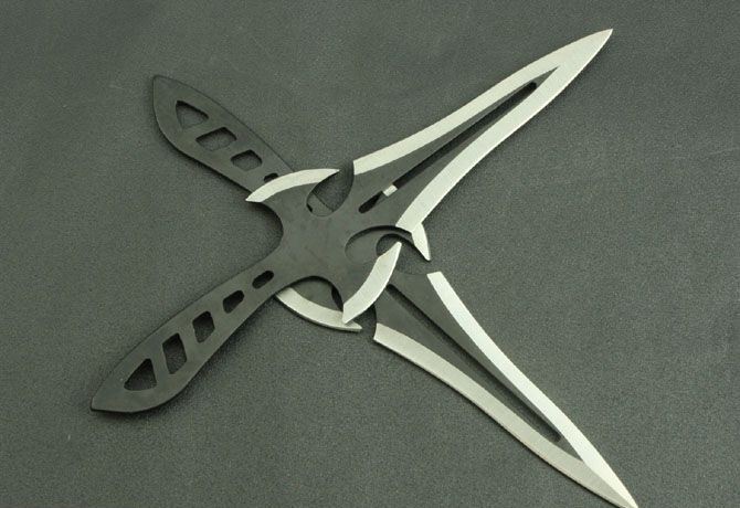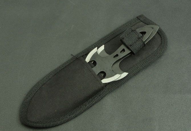 十字架飞镖 钢材:3Cr13Mov 长度:19cm 刃宽:5cm(最宽处) 刃厚:025cm 柄长:7cm 总重:160g(含包装) 表面:喷黑色 刀套:尼龙套 其它:三支装