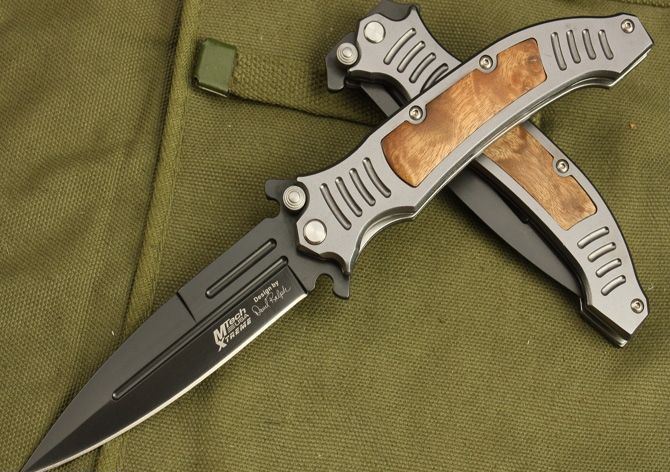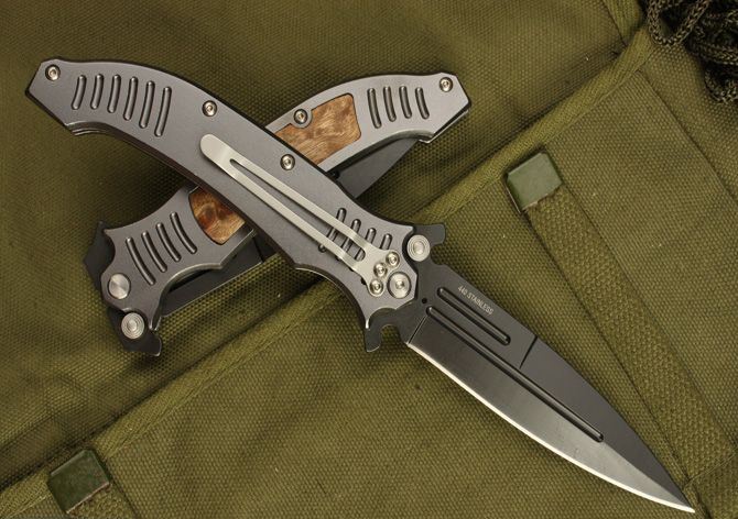 全 长: 23.2cm 刃 长: 10.2cm 刃 宽: 2.5cm(最宽处) 闭 合: 12.7cm(柄长) 刃 材: 440 硬 度: 57 表 面: 黑钛 刃 厚: 0.3cm 柄 厚: 1.4cm 柄 材: 航空铝,精镶日本影木,既防滑又美观。 净 重: 160克 包 装:原装彩盒 锁 闭: 侧锁,坚固安全而且很舒适 其 他:全刃开锋,各部件都采用精密特制的标准件