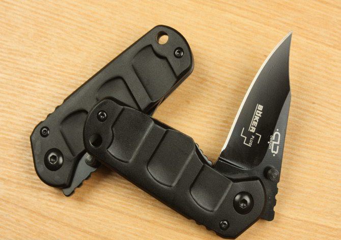 博克.小海豚 全长:13.3cm 刃长:5.5cm 刃宽:2.8cm 刃厚:0.22cm 刃材:420不锈钢 硬度:53HRC 表面:发黑 柄材:铝 柄长:8cm 重量: 50克 包装:仿原厂包装