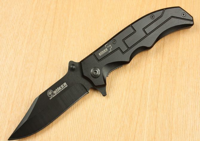 博克—柏林墙(黑) 全长:21.5cm 刃长:9.5cm 刃宽:2.5cm 闭合:12cm 刃厚:0.28cm 钢材:440C 硬度:56-58 净重:110g 柄材:金属铝 锁型:侧锁 包装:彩纸盒 产地:国内代工