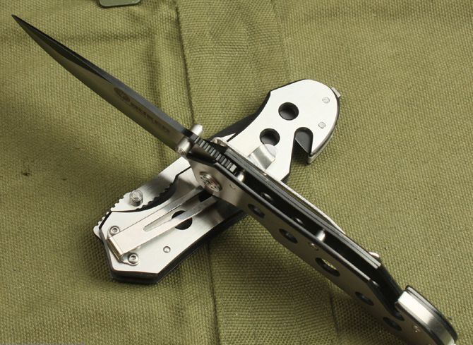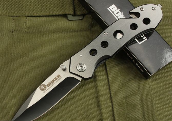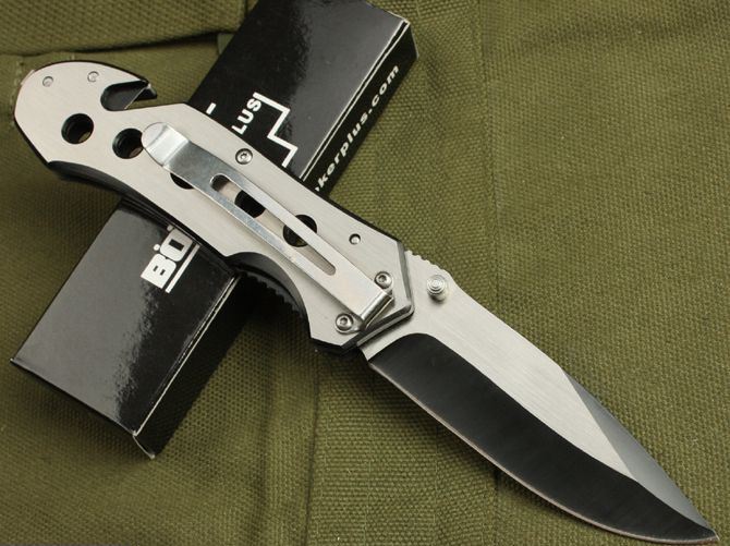 博克767折刀 全长:22cm 刃长:8.5cm 柄长:11.5cm 刃厚:2.2mm 刃宽:2.3cm 刃材:3Cr13 柄材:全钢 硬度:53HRC 净重:140克 毛重:150克 表面处理:拉砂 锁型:边锁