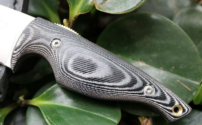 全长:18.5cm 刃长:7.5cm 柄长:11cm 刃厚:3.7mm 刃材:5Cr15(采用真空热处理,再经过零下80度的深冷处理) 硬度:55-57HRC 柄材:米克塔(CNC电脑锣精密加工成型,精细手工打磨处理) 刀鞘:牛皮 刃面处理:砂光