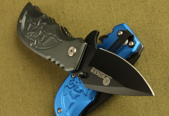 博克—小蝙蝠折刀(灰色) 全长:15.2cm 刃长:6.5cm 柄长:8.5cm 刃厚:2.8mm 刃宽: 3cm 刃材: 3Cr13 柄材: 铝 硬度: 55HRC 净重:108克 毛重:116克 表面处理:氧化 锁型:快开