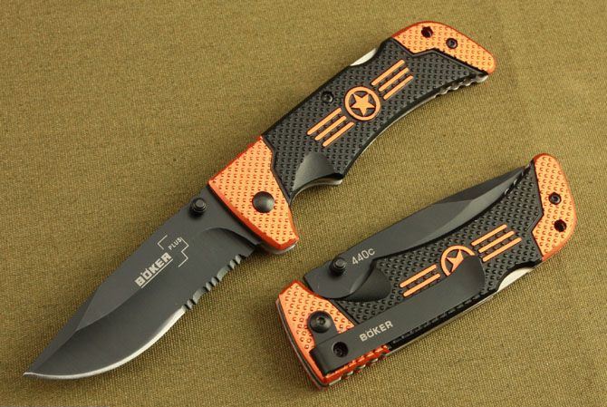 博克—J168折刀 全长:18.5cm 刃长:8cm 柄长:10.5cm 刃厚:2.9mm 刃材: 3Cr13 柄材: 铝片 硬度: 55HRC 重量:150克 表面处理:氧化黑 锁型:制尾