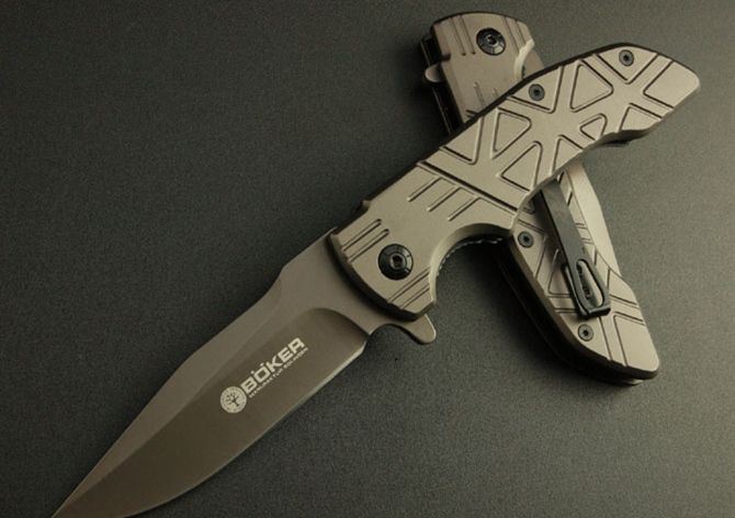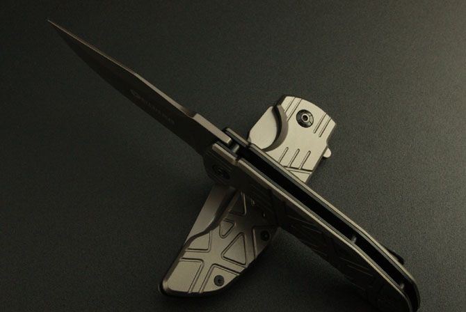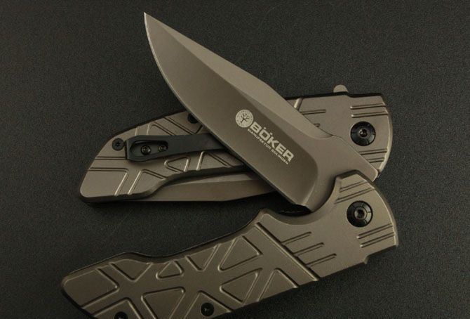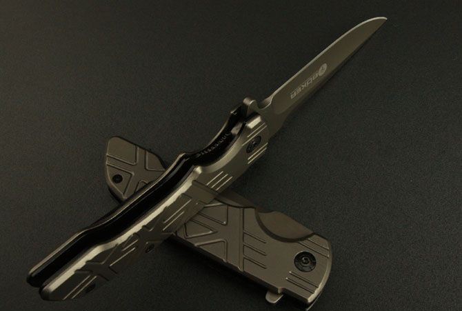 博克—DA32折刀 全 长:22cm 刃 长:9.5cm 柄 长:12.5cm 刃 宽:2.5cm(最宽处) 刃 厚:3.8mm 刃 材:3Cr13 硬 度:55HRC 刀 柄:钢 表 面:镀钛 重 量:220克 锁定方式:快开