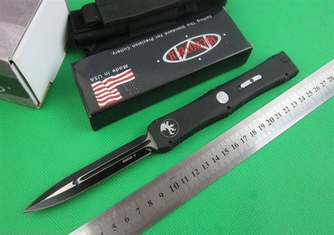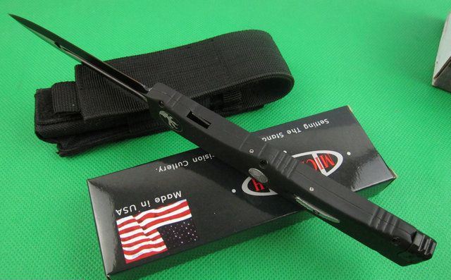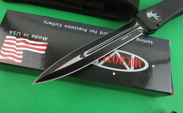 Microtech微技术nemesis复仇女神直跳刀(黑色) 展开: 25.98CM(13.23”) 柄长: 14.6CM 刃长: 12.4CM(4.89”) 刃材料:440 柄材料:锌铝合金 重量:200克 美国Microtech微技术公司,一个传奇的名字,推出了一系列的令人称赞的自动弹簧刀,在全球有着数以万计的痴迷煌者! Nemesis 复仇女神款直跳刀,是单动作形式直跳刀,即刀刃自动弹出,但收刀要手动操作,这也区别微技术的其他全自动款直跳刀