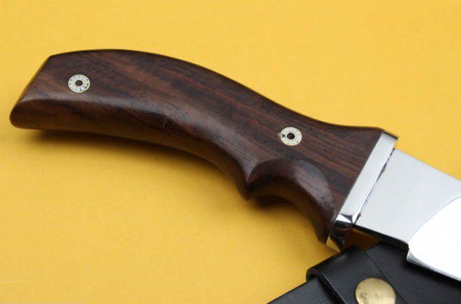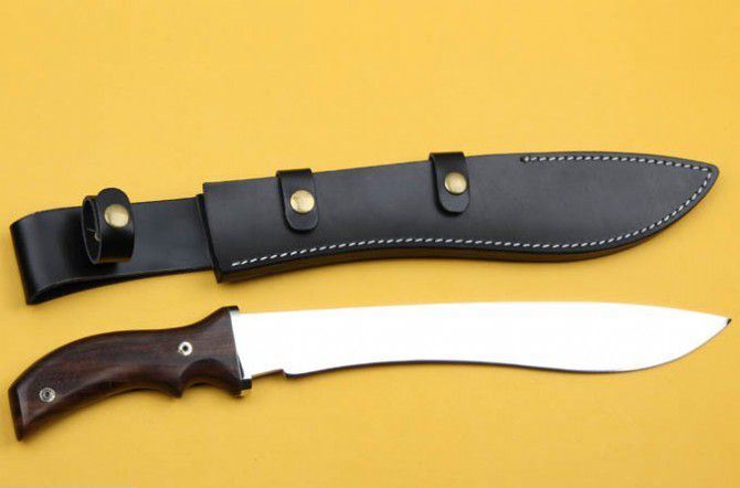全 长:44.5cm 刃 长:31cm 刃 宽:4.5cm(最宽处) 刃 厚:6mm 柄 长:13.5cm 刃 材:5Cr15Mov 硬 度: 57HRC 柄 材: 钢头+檀木 毛 重:660克(含包装) 包 装:皮鞘 表 面:镜光