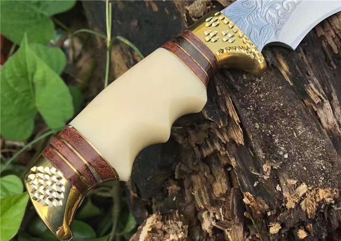 全 长:295mm 刃 长:188mm 柄 长:113mm 刃 宽:40mm 刃 厚:4.0mm 刃 材:5Cr13Mov 重 量:399g(含包装) 硬 度:57HRC 表 面:腐蚀纹 柄 材:双铜头+兽骨 锁 型:定锁 其 他:配牛皮套
