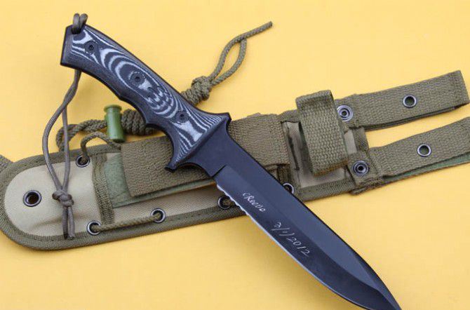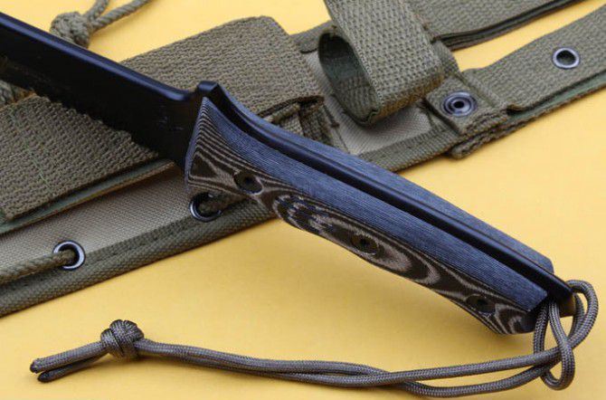 全 长: 32cm 刃 长: 18.5cm 刃 厚: 6mm 刃 材: 440C 硬 度: 58HRC 表 面: 黑钛 柄 材: 米卡塔 刀 鞘: 尼龙