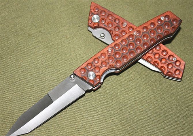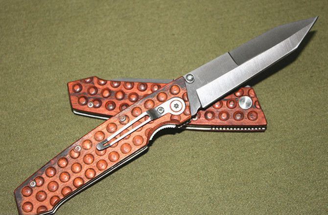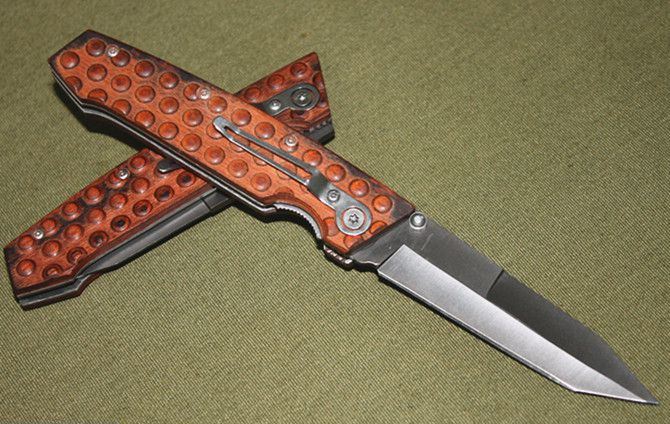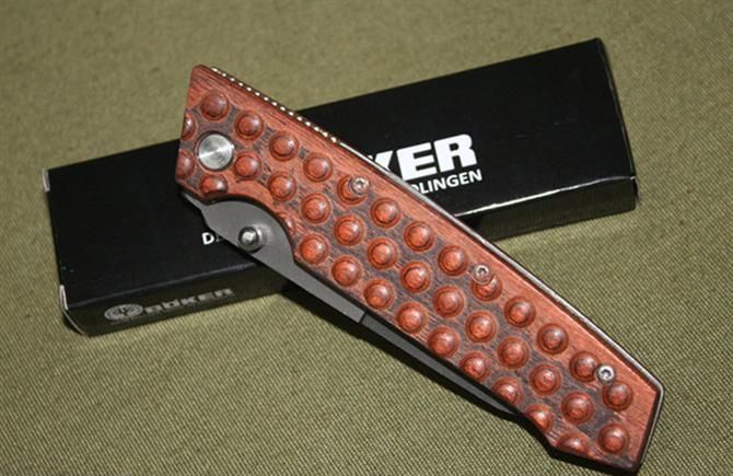 博克—03折刀(红木柄) 全 长:19.5cm 刃 长:8.5cm 柄 长:11cm 刃 厚:0.28cm 刃 材:3Cr13 柄 材:全钢 硬 度:55HRC 表 面:灰钛 重 量:140g 锁 定: 侧锁