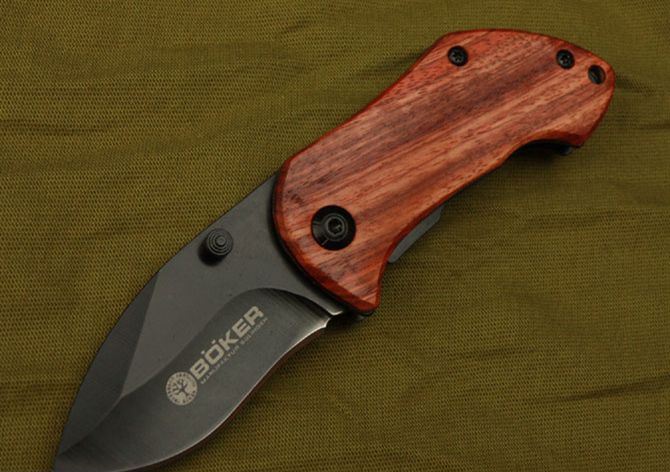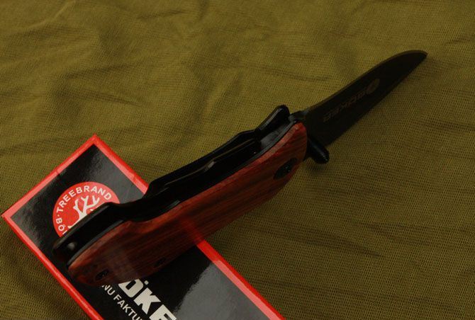 博克—DA33折刀 全 长:13cm 刃 长:5.5cm 柄 长:7.5cm 刃 厚:0.28cm 刃 材:3Cr13 柄 材:木柄 硬 度:55HRC 表 面:氧化黑 重 量:100g 锁 定: 侧锁