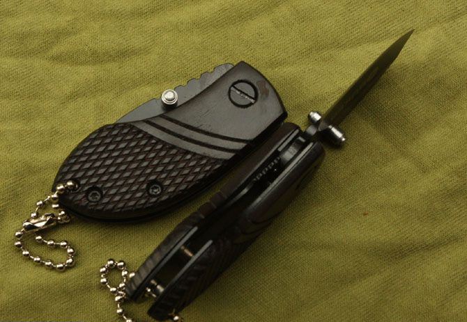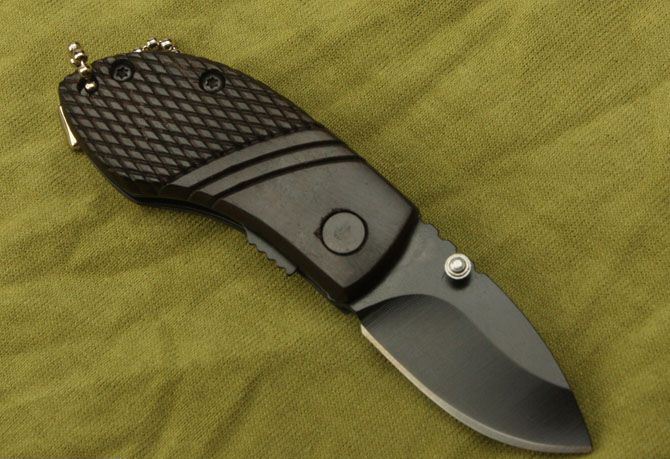 刃材:3Cr13 硬度: 56HRC 全长:10CM 刃长:4CM 刃厚: 0.23CM 刃宽:2CM (最宽处) 柄长: 5.8CM 涂层:氧化黑 柄材: 木柄 重量:55克 锁定: 侧锁