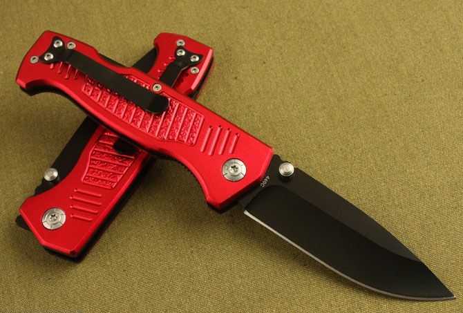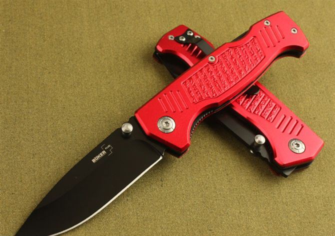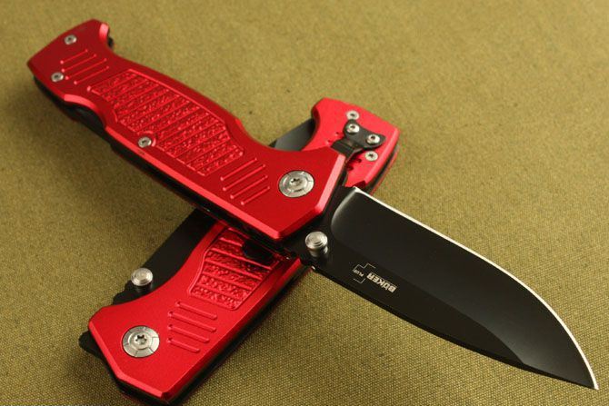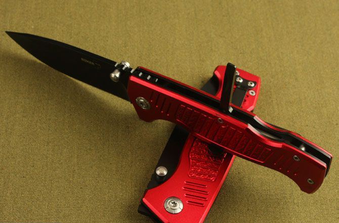 博克—M005折刀(红色) 全长:20.5cm 刃长:9cm 柄长:11.5cm 刃厚:2.9mm 刃宽: 2.8cm 刃材: 3Cr13 柄材: 铝 硬度: 55HRC 净重:150克 毛重:160克 表面处理:氧化玫红 锁型:边锁