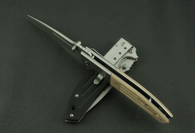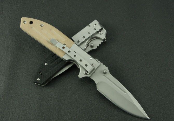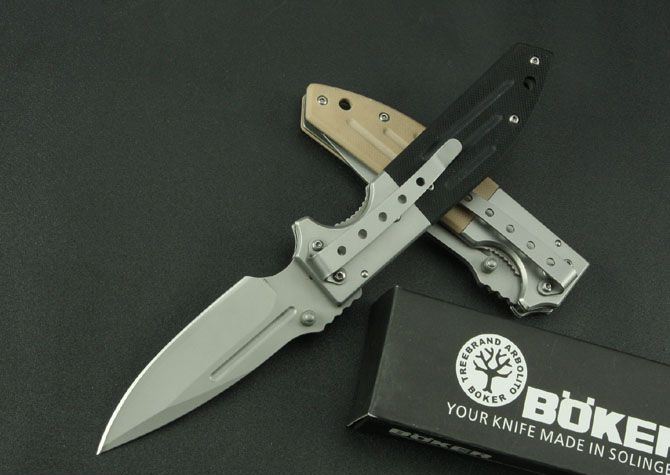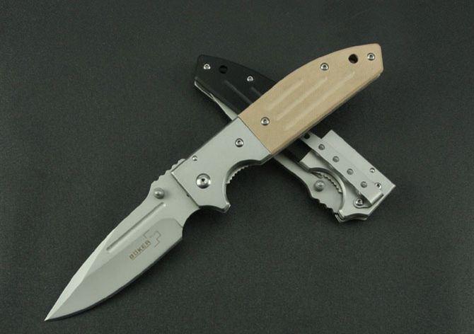 博克T—401战术折刀(双色) 全 长:205mm 刃 长:75mm 柄 长:117mm 刃 宽:26mm 刃 厚:2.8mm 刃 材:3Cr13 重 量:130g 硬 度:55HRC 表 面:喷灰 柄 材:G10柄 锁 型:线锁 其 他:配彩盒