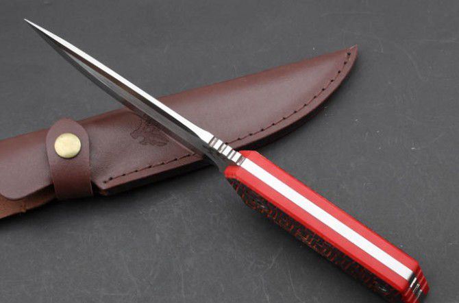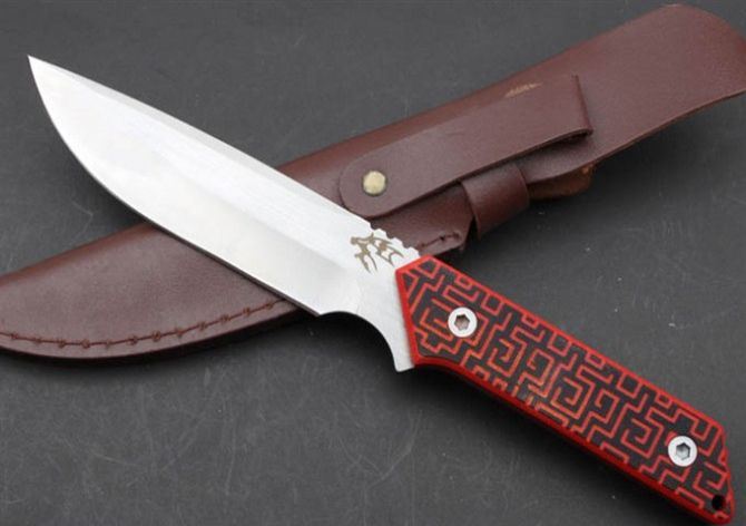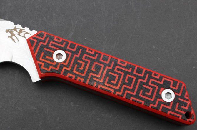 博克—红日小直 全 长:248mm 刃 长:122mm 柄 长:115mm 刃 宽:32mm 刃 厚:5.7mm 刃 材:5Cr13Mov 重 量:350g(含包装) 硬 度:56HRC 表 面:砂光 柄 材:黑红G10 锁 型:定锁 其 他:配皮套和纸盒
