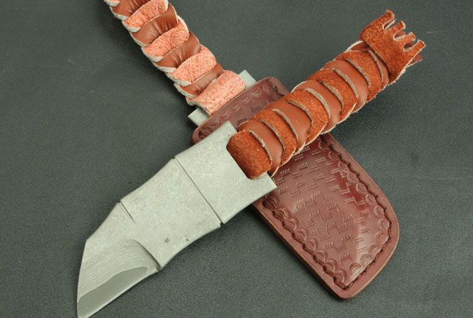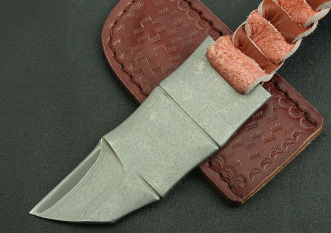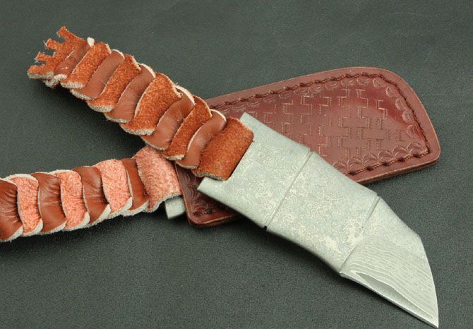 博克大马士革—小鱼儿收藏刀 全 长:100mm 刃 长:40mm 柄 长:60mm 刃 宽:33mm 刃 厚:5mm 刃 材:大马士革 重 量:112g(含包装) 硬 度:58HRC 表 面:钢本色 柄 材:一体钢 锁 型:定锁 其 他:配牛皮套和硬纸盒