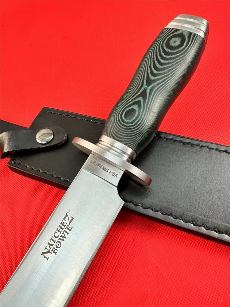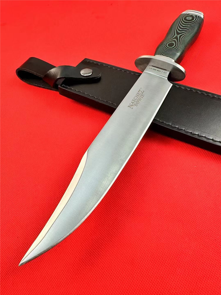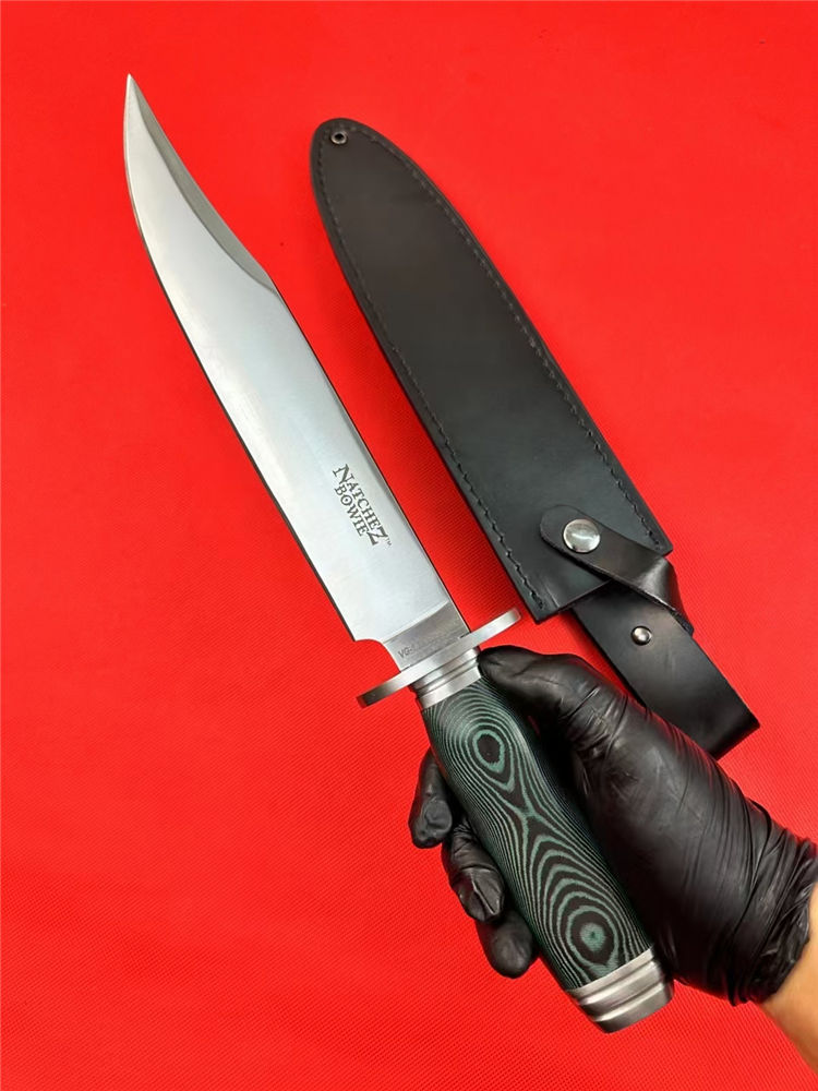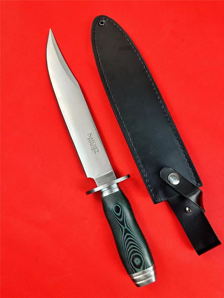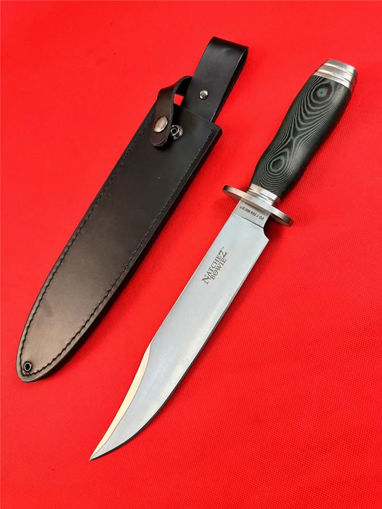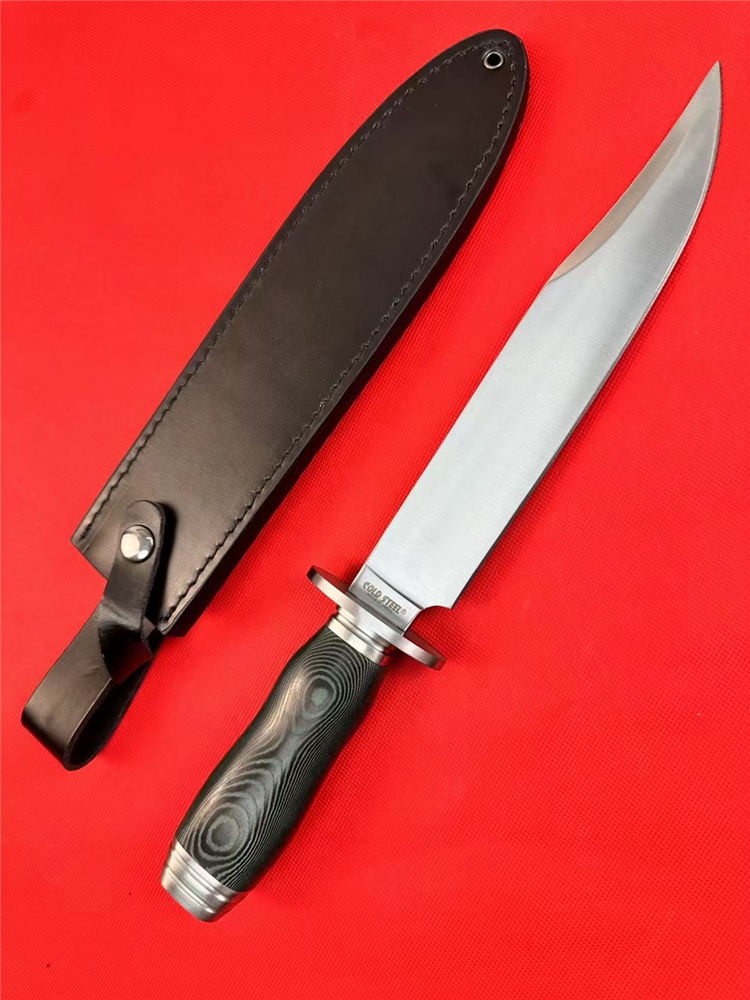 冷钢16ab博弈刀 全长:38cm 刃长:23cm 刃宽:3.8cm(最宽处) 刃厚:0.6cm 刃材:440 硬度:57HRC 表面:砂光 柄材:米卡塔 柄长:13.4cm 刀重:440克 总重:620克(含刀套和包装物) 附件:皮套 包装:仿原装纸盒