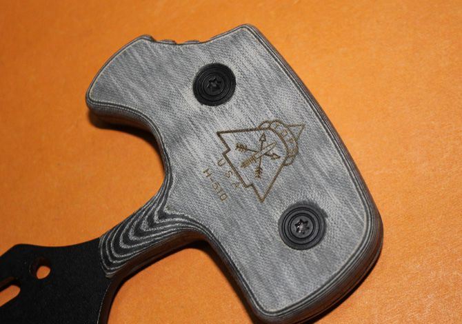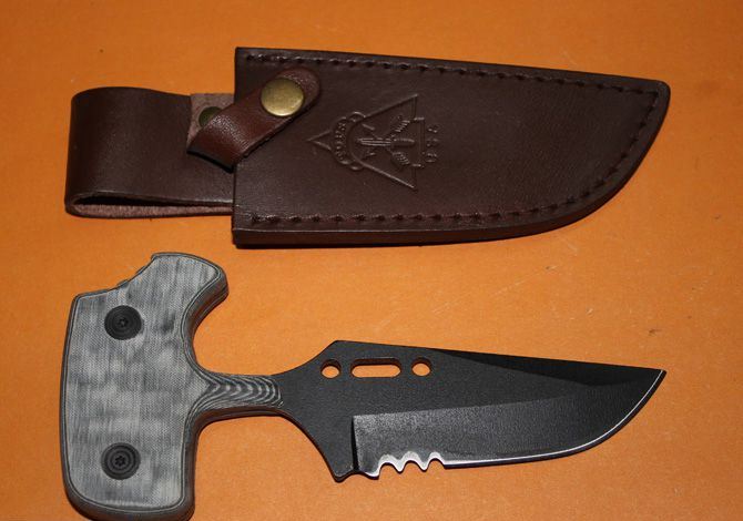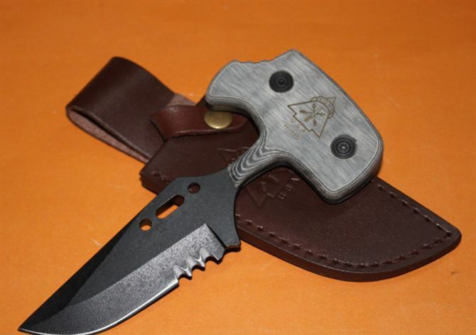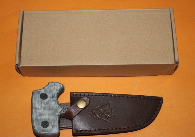 精仿TOPS.H510手刺 全长:16.3CM 刃长:9CM 刃宽:3.8 CM 刃厚:0.38CM 柄宽:7.5 CM 柄厚:1.5CM 刃材: 440C 表面:黑钛 硬度: 56 HRC 手柄:米卡塔 刀鞘:真皮 净重:200克 总重:280克(含皮套和纸盒)
