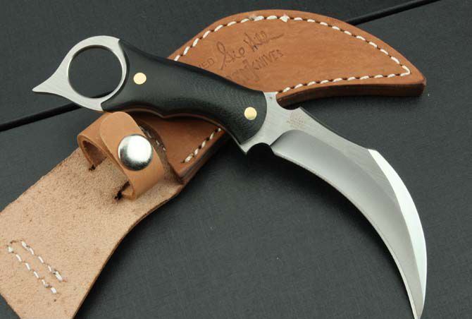 UC—120獠牙爪子(皮套) 全 长: 19cm 刃 长: 9.5cm 刃 宽: 2.5cm (最宽处) 刃 材: 5Cr13 硬 度: 57HRC 刃 厚: 0.5.1cm 柄 长: 10cm 表 面: 砂光 柄 材: 米克塔 重 量:225克(含鞘)