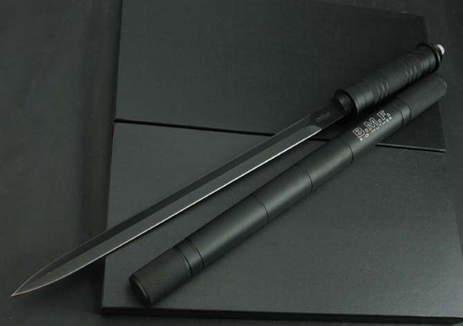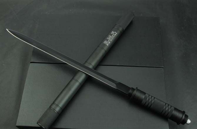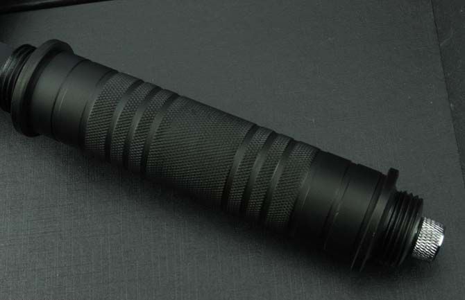 UC配灯水管双锋棍刀 全长:57.5CM 反接:95CM 刃长:39CM 刃厚:4.6CM 管径:3.25CM 重量:720g(含包装) 硬度:56HRC