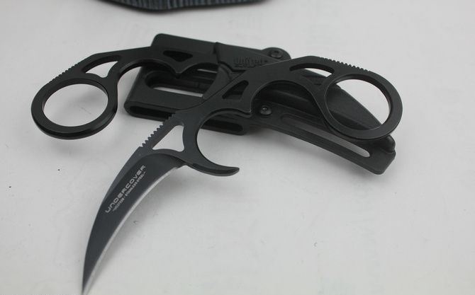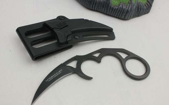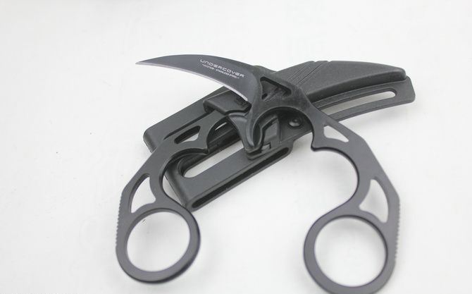 全 长: 13cm 刃 长: 5.5cm 柄 长: 8.5cm 刃 宽: 1.3cm(最宽处) 硬 度: 59HRC 刃 厚: 0.35cm 重 量: 60克(含刀鞘) 刃 材: 7CR17 表 面: 发黑 其 他: ABS刀鞘