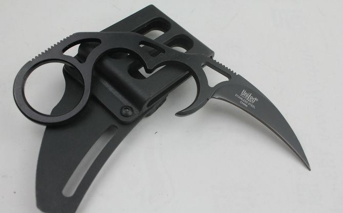 联合刀具—2732吸血虫 全 长: 13cm 刃 长: 5.5cm 柄 长: 8.5cm 刃 宽: 1.3cm(最宽处) 硬 度: 59HRC 刃 厚: 0.35cm 重 量: 60克(含刀鞘) 刃 材: 7CR17 表 面: 发黑 其 他: ABS刀鞘