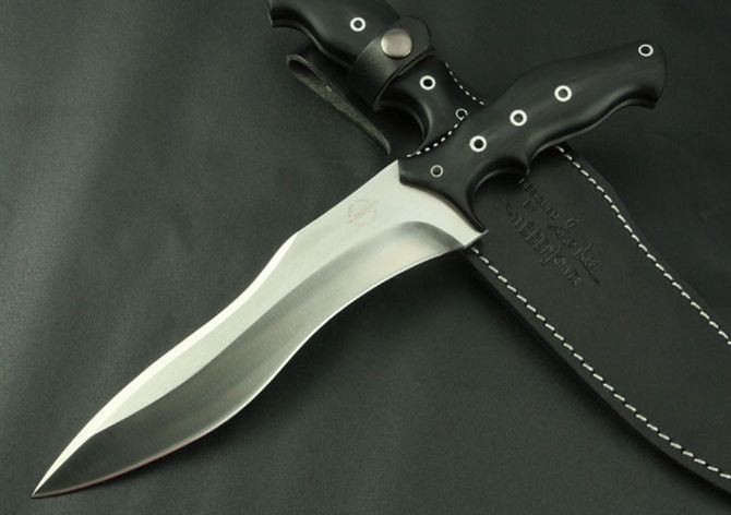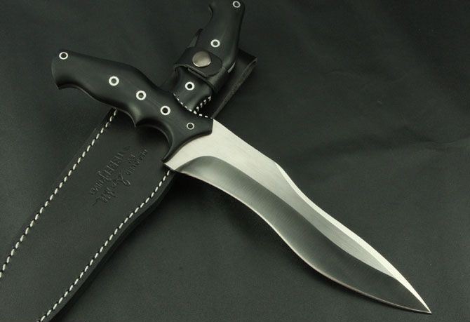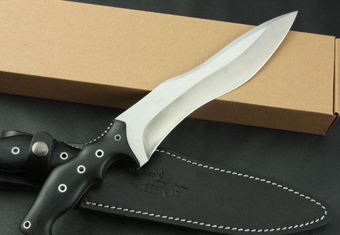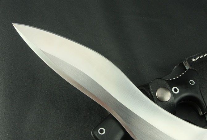 联合刀具-蛇刀 全 长:338mm 刃 长:210mm 柄 长:130mm 刃 宽:40mm 刃 厚:5.3mm 刃 材:7Cr17Mvo 重 量:570g(含包装) 硬 度:57HRC 表 面:砂光 柄 材:G10 锁 型:定锁 其 他:配皮套和牛皮纸盒