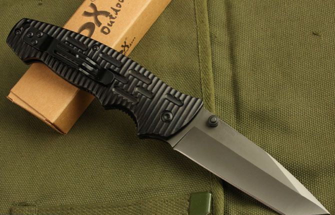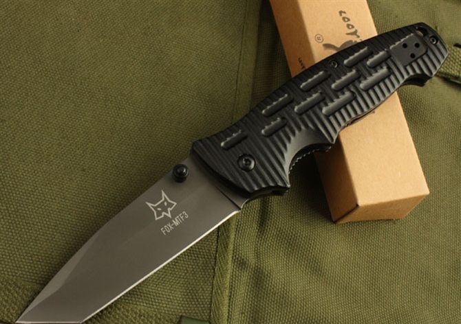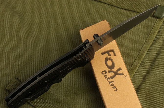 狐狸-DA8(黑色) 全长:20.3cm 刃长:9cm 柄长:11.3cm 刃厚:2.8mm 刃宽: 0.26cm 刃材: 3Cr13 柄材: 铝柄 硬度: 54HRC 净重:140克 毛重:150克 表面处理:氧化钛 锁型:边锁