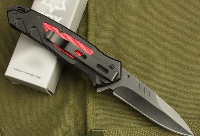 狐狸-A036折刀 全长:19.6cm 刃长:8.5cm 柄长:11.2cm 刃厚:2.8mm 刃宽: 0.22cm 刃材: 3Cr13 柄材: 铝柄 硬度: 54HRC 净重:115克 毛重:130克 表面处理:氧化黑 锁型:快开