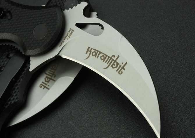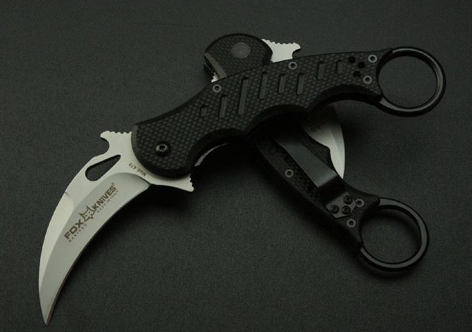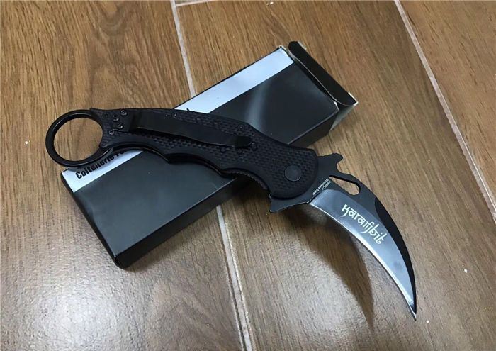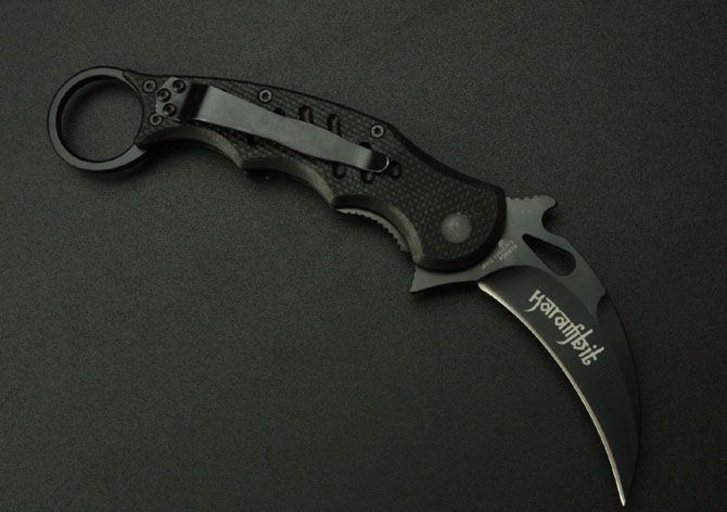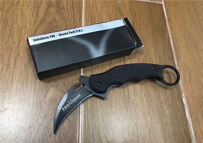 狐狸—690爪子折刀(黑、白) 全 长: 19.5cm 刃 长: 7cm 刃 厚: 0.28CM 刃 材: 5Cr13 柄 材: G10 硬 度: 57Hrc 表 面: 氧化黑和白 净 重: 140g
