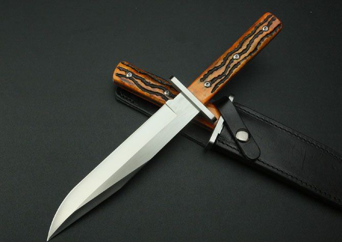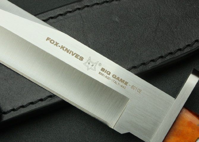 狐狸—601CE战术直刀 全 长:317mm 刃 长:175mm 刃 宽:32mm 刃 厚:5mm 刃 材:AUS-10A 重 量:460g 硬 度:58-59HRC{真空热处理) 表 面:钢本色 柄 材:橙色骨片 刀 鞘:手工进口头层牛皮刀鞘(黑色) 出 品:狐狸OEM