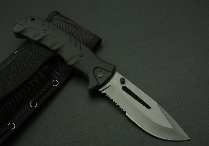 全长:28.5cm 刃长:12.5cm 柄长:13cm 刃厚:2.7mm 刃宽: 2.7cm 刃材: 5Cr13 柄材: 复合板K10柄 硬度: 56HRC 净重:540克 毛重:320克 表面处理:镀钛 锁型:制锁