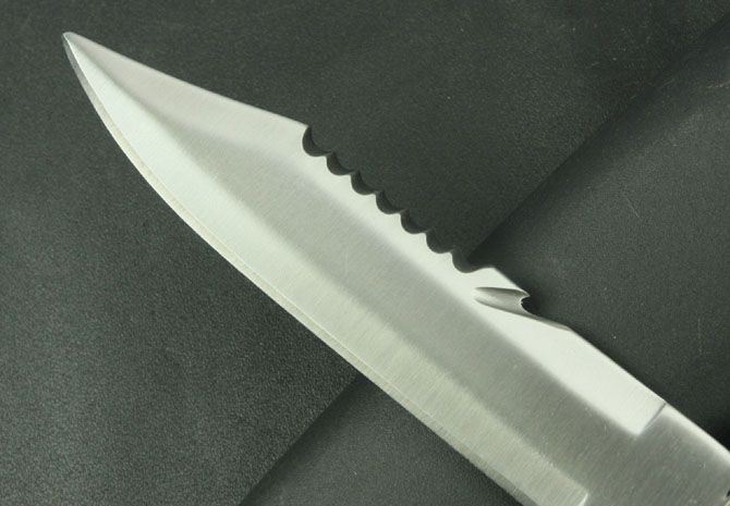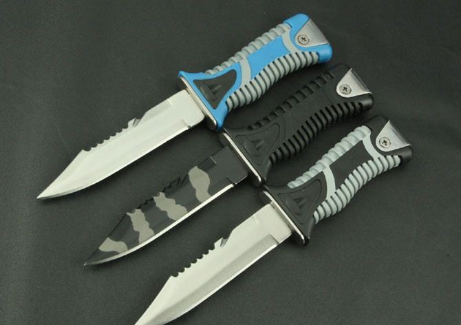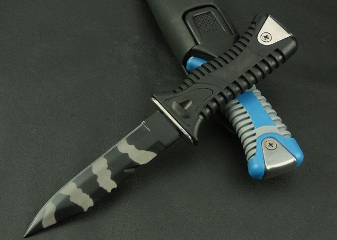 箭头潜水刀(三色) 全 长:240mm 刃 长:122mm 柄 长:111mm 刃 宽:25mm 刃 厚:3.7mm 刃 材:3Cr13Mov 重 量:260g(含包装) 硬 度:55HRC 表 面:虎纹和砂光 柄 材:塑胶 锁 型:定锁 其 他:配纸盒