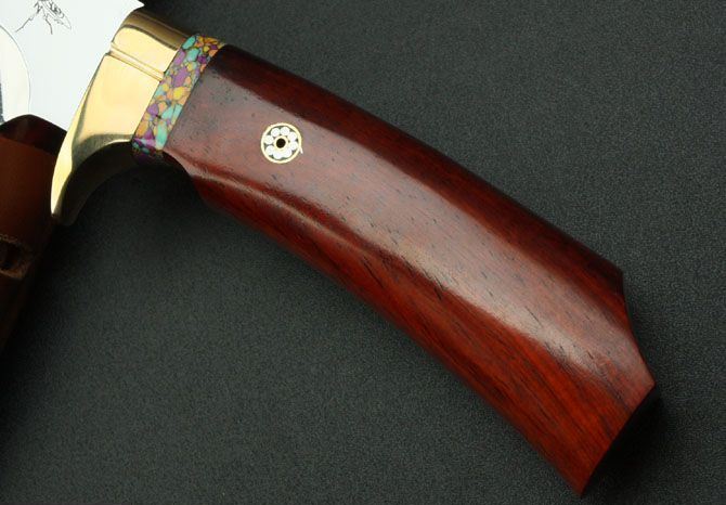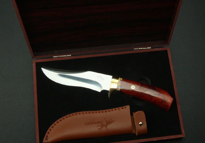 全 长: 24cm 刃 长: 13cm 刃 宽: 3.5cm(最宽处) 柄 长: 11cm 硬 度: 59HRC 刃 厚: 0.37cm 重 量: 670克(含包装) 表 面: 镜光 刃 材: 7Cr17 柄 材: 铜+木 其 他: 刃口锋利